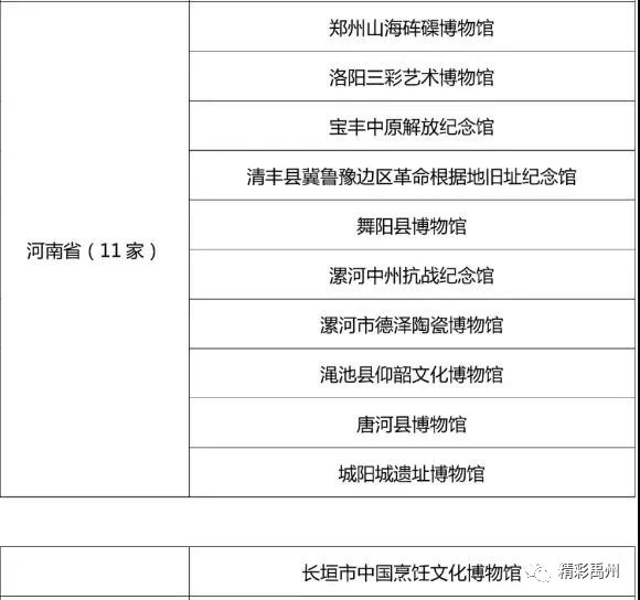 其中,中国文字博物馆、平顶山博物馆、安阳博物馆3家博物馆定级为一级博物馆;河南省地质博物馆、郑州大象陶瓷博物馆、新乡市博物馆等12家博物馆定级为二级博物馆;郑州山海砗磲博物馆、洛阳三彩艺术博物馆、渑池仰韶文化博物馆等11家博物馆定级为三级博物馆。