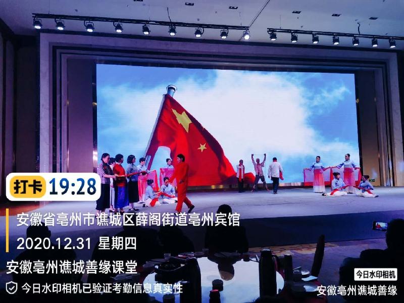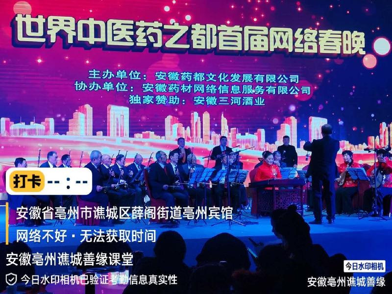 2020年12月31日,东望集团安徽亳州焦城善缘课堂的志愿者,应邀参加由安徽药都文化发展有限公司主办、安徽药材网络信息服务有限公司协办、安徽三河酒业独家赞助播出的《世界中医药之都首届网络春晚》节目,传承和传播中华优秀传统文化与中国中医药文化,让中华优秀文化和中医药文化发扬光大家喻户晓。