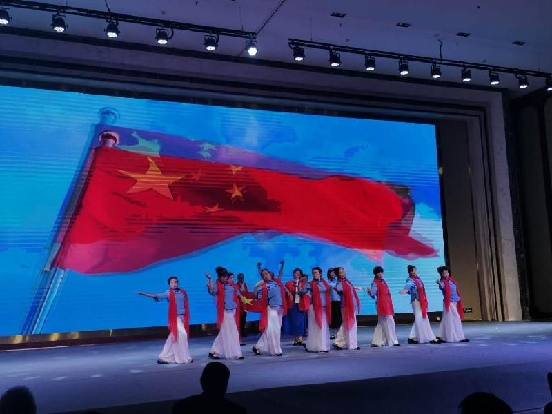 随着主持人报幕,志愿者表演的情景剧《绣红旗》上台时,台下爆发出雷鸣般的掌声,志愿者英姿飒爽地走上舞台,他们娴熟的动作、优美的舞姿,把《绣红旗》演绎得淋漓尽致、尽善尽美,再现了当年监狱的情景,被捕的共产党员在狱中,为了给战友们加油鼓励,迎接中国的成立,她们冒着生命危险偷偷的绣红旗,再现炎黄子孙、华夏儿女的勇者无惧、不怕牺牲的大无畏革命精神。