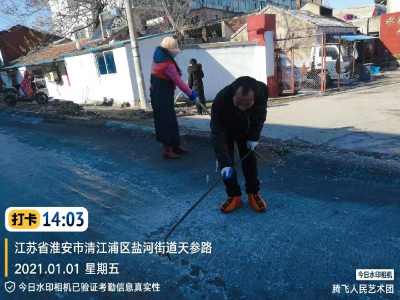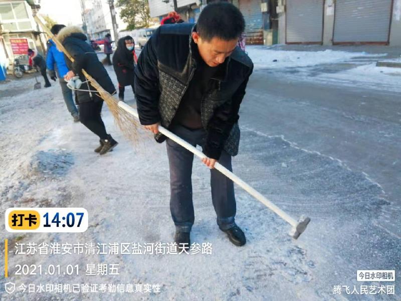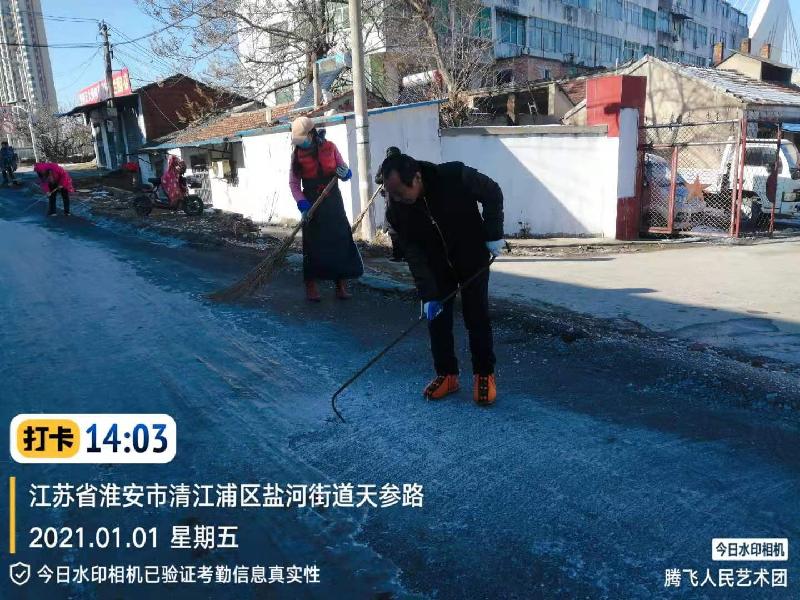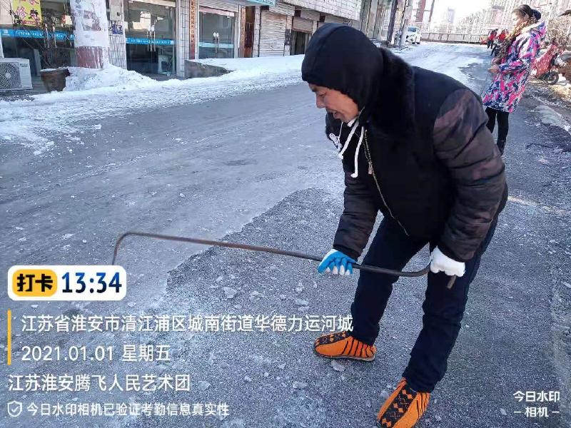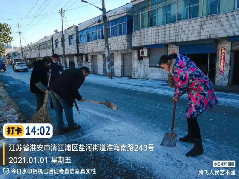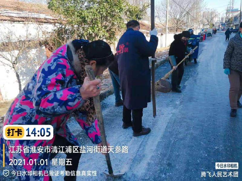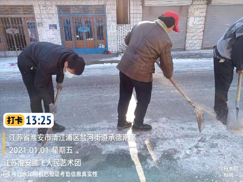 2021年1月1日,大雪漫野,把大地装点的分外妖娆,但道路积雪给人民出行带来严重不便,尤其是轮窑村桥北东侧的一条便道,坡陡、雪厚、路滑,行人寸步难行。东望集团江苏淮安腾飞人民艺术团负责人了解情况后,一声令下志愿者36人抢工扫雪,清理路道,作为新年开局之举。