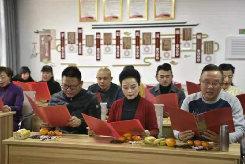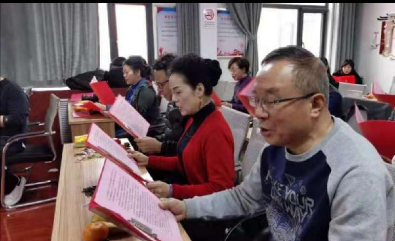虽然大家在元旦期间都已经收听收看过2021新年贺词,但是总觉得要深入理解学习的话,自己朗读出来会更有体会。1月3号是商丘市朗诵家协会的活动日,会员们早早来到市电业局社区会议室里,把用红色的纸张事先打印好的元旦贺词放在大红色本夹子里,在神圣庄严的气氛中怀着无比崇敬的心情齐声朗读新年贺词。越读越激动,读到最后一段,大家不约而同的站了起来,直到全文朗读结束之后,大家还在激动的自己重复着贺词中感动人心的语句,迟迟不肯坐下。深深感到,用这种大声朗读的方式学习新年贺词,对于深刻理解,细心品味新年贺词的丰富含义起到了意想不到的效果,更增强了我们的民族自信心,强烈的感受到在伟大的中国共产党领导下当代中国的强大,为我们的祖国骄傲,为身为一个中国人而自豪。