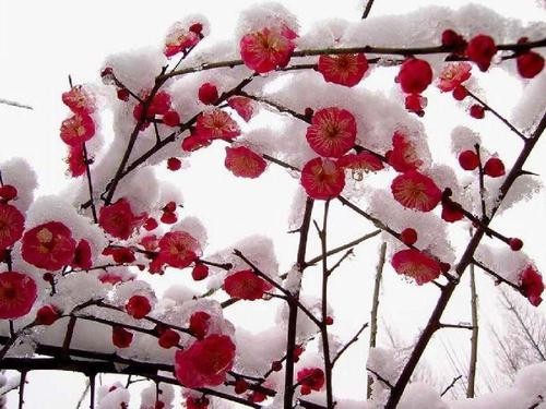 惟念六花随我舞,冬梅傲骨艳红肥。