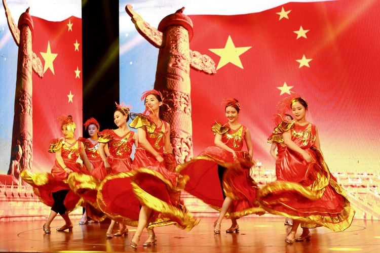 晚会绘宏图,歌乐竞津舞蹈。