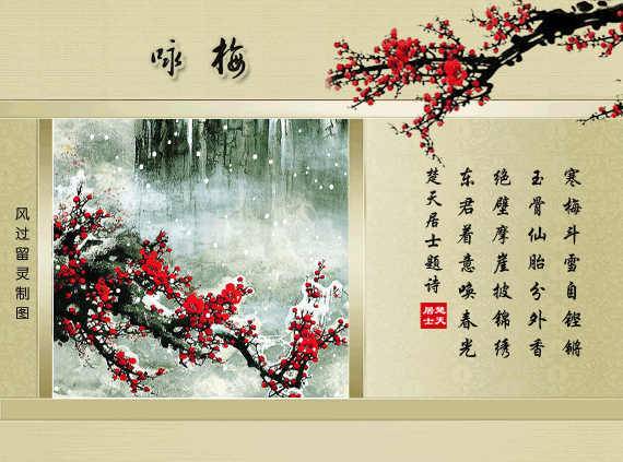 墙侧早梅风雪开,山中翠柏白云裁。