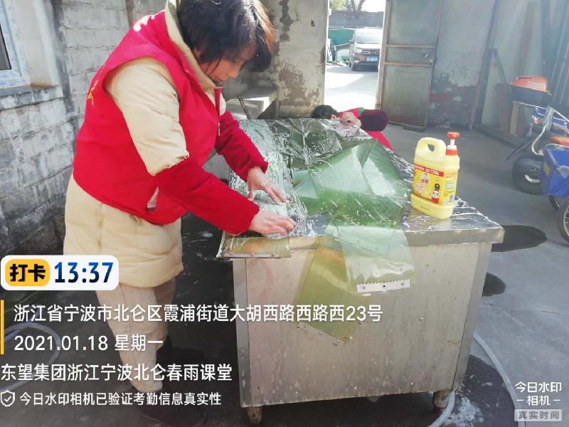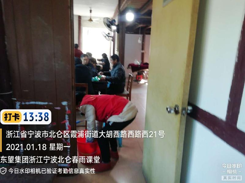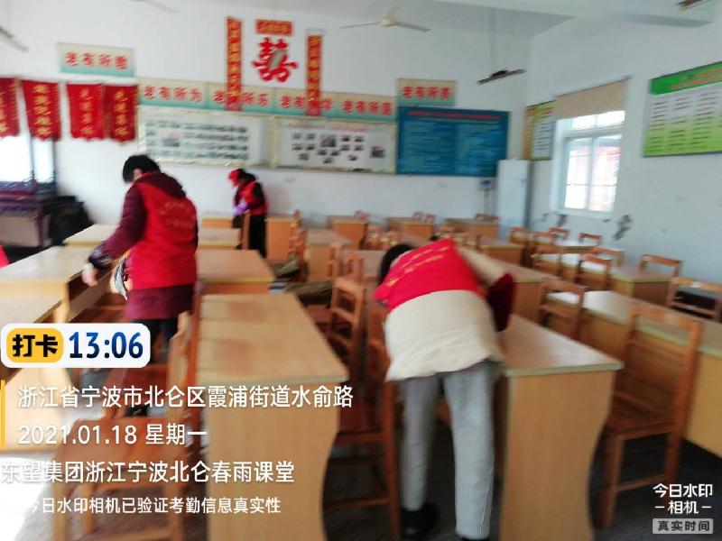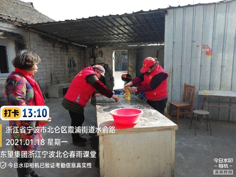 2021年1月18日,严冬时节,天气特别寒冷。东望集团浙江宁波北仑春雨课堂的志愿者,受北仑区霞浦街道水俞村老年协会会长的邀请,帮助他们打扫卫生。