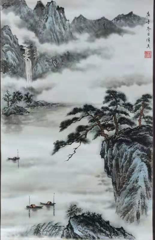 墨毫纸砚蕴幽怀,皴抹点勾抒静雅。