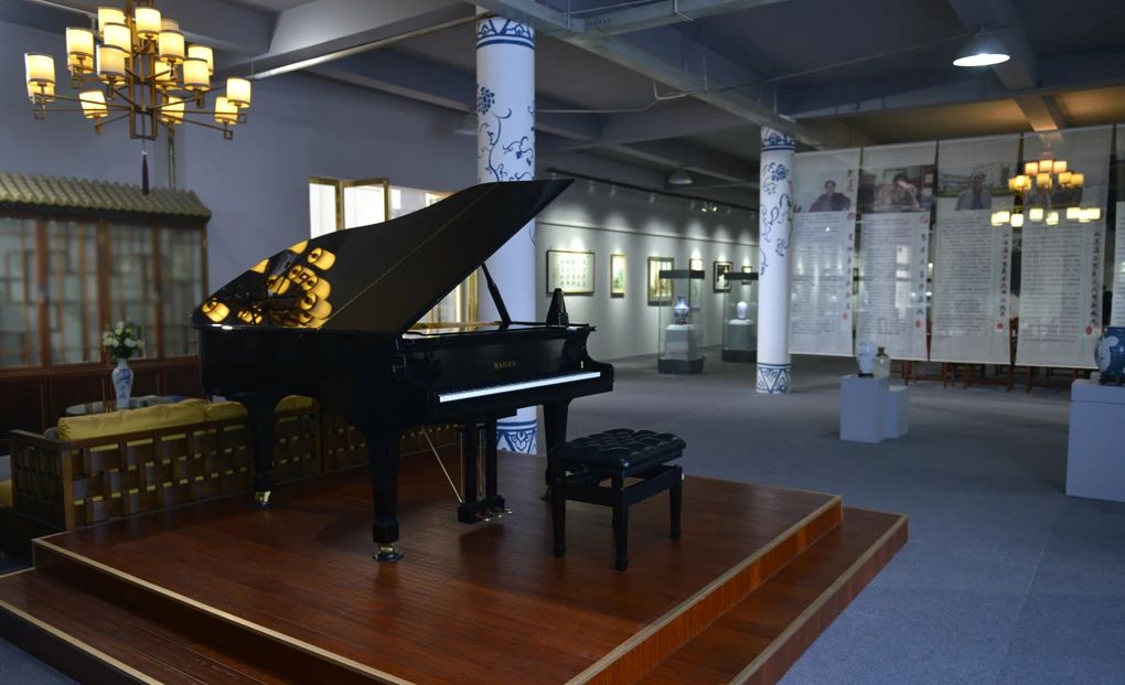 褪去浮华,还原本真。从艺术中心大门往内看,古筝与钢琴相互对应,带领观众开启音乐和艺术的跨界之旅。音乐与艺术在安静共振,行走其中都能让人从容不迫,走至创作区,这里可现场作画,以画入瓷,以胎为纸,留下您手造的痕迹,成就每一件物品的独一无二。