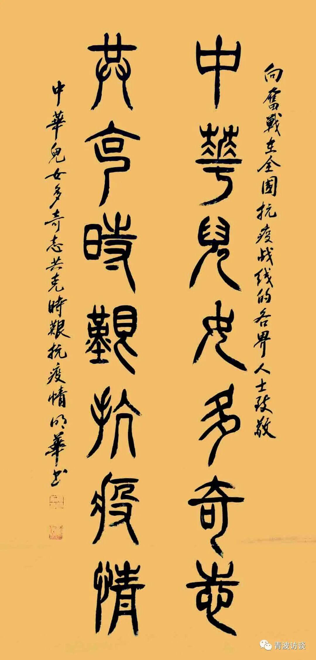 那时,远赴四川农村老家照顾病重父亲的晏明华先生,得知了此消息后,认真构思,精心创作了两幅四尺整张的竖幅篆书毛泽东诗词。