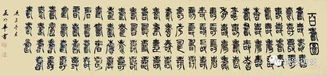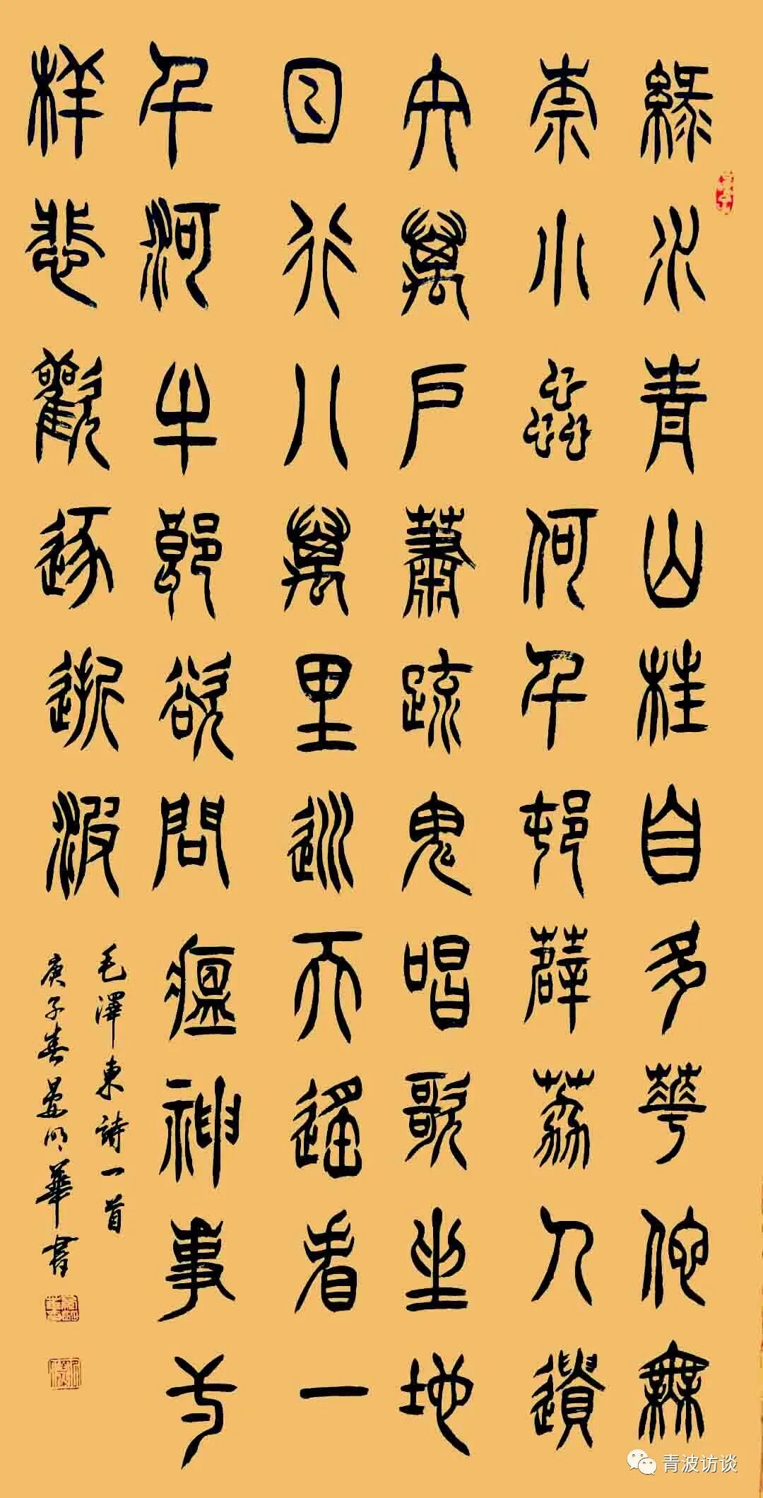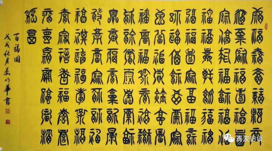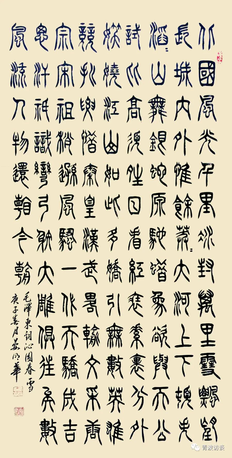 多年的日积月累,明华先生用篆书书写创作过100多首毛泽东诗词、数百首古诗词。不仅如此,还有千字文长卷、毛公(毛泽东)颂千字长卷、乾隆御制盛京赋长卷等等。