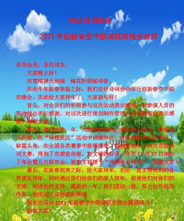 祝安达诗协2021年新春空中歌诵联欢晚会圆满成功!