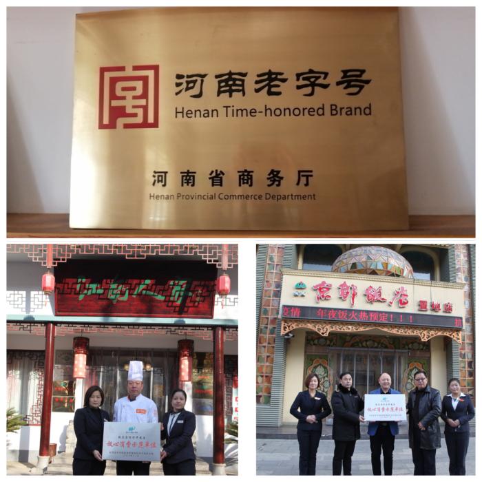 进入2021年,京都实业在获得“诚信单位”荣誉的同时,还获得了一系列含金量极大的荣誉称号:驻马店市财政局为京都饭店颁发了“2021-2022年度党政机关会议定点场所”的牌匾。2021年2月12日,河南省商务厅办公室公布第七批河南老字号的通知,经省商务厅厅长办公会研究通过和社会公示,认定河南省京都实业有限公司等61家企个品牌为第七批河南老字号。日前,驻马店市市场监督管理局经济开发区分局相关负责人又分别为京都饭店置地店和江南人家金雀店送来了“驻马店经济开发区放心消费示范单位”的牌匾。