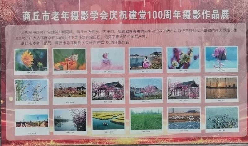 为庆祝中国共产党建党100周年,讴歌党的丰功伟绩,商丘市老年摄影学会组织老年摄影爱好者,用镜头生动展示商丘经济社会发展的巨大成就和商丘人民的时代风采,为庆祝建党百年营造浓厚的氛围。
