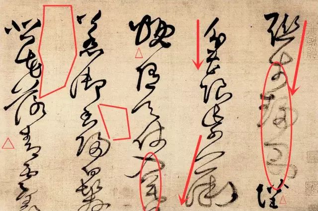 2、忌由快产生的平拖、干笔、粗细一样的现象,行处皆留,留处皆行。