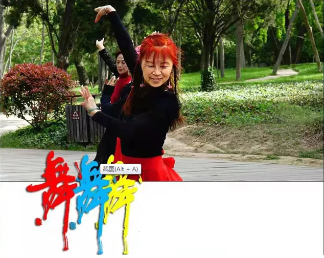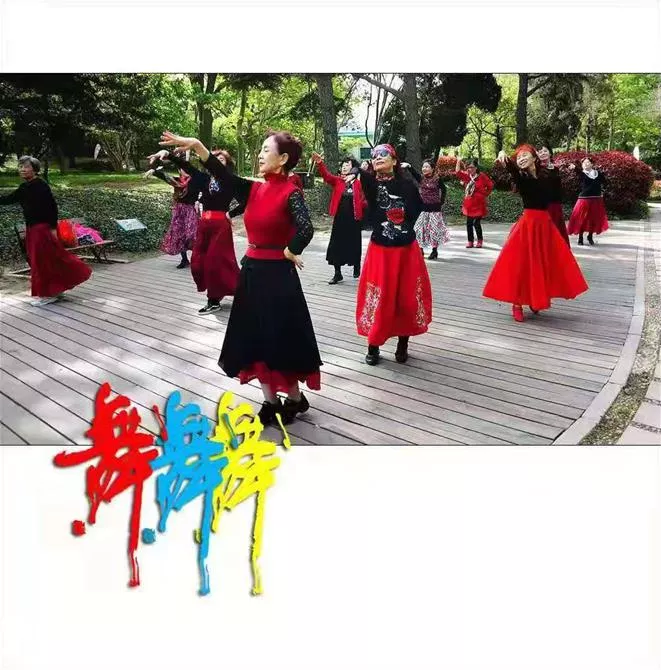 照片为洁儿领舞的红飘带舞蹈队晨练姿影