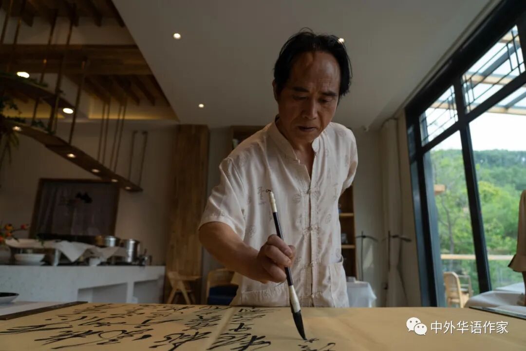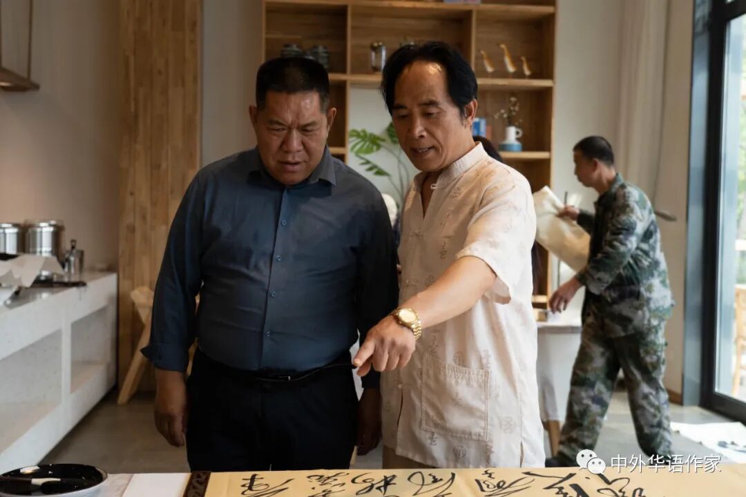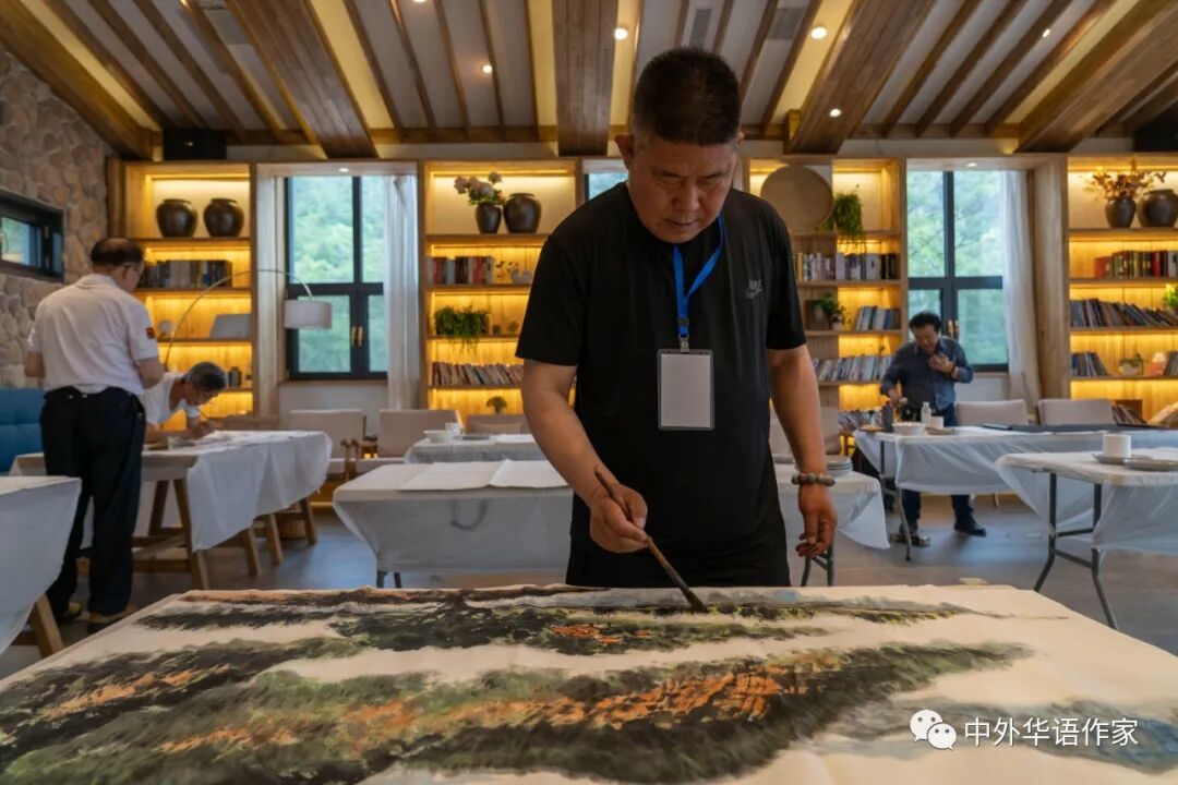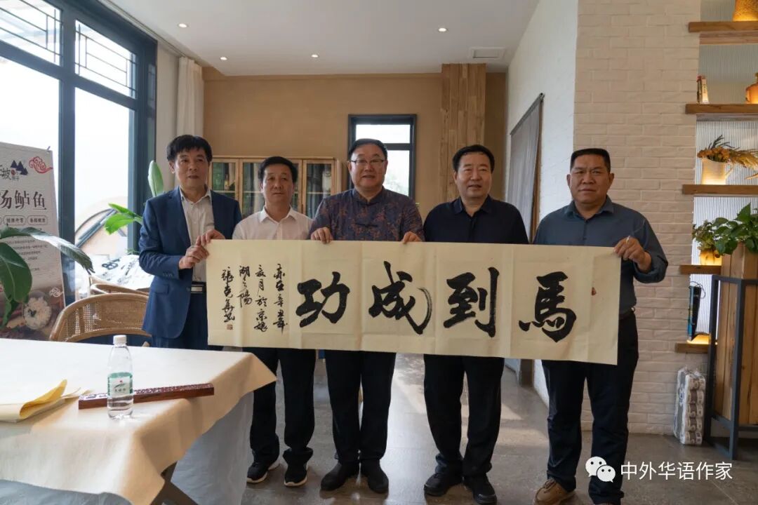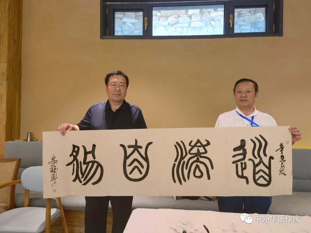 在京娘湖地博园假日酒店前合影留念后,集体参观游览了风景秀丽京娘湖景区。游览京娘湖景区后,在王坡民宿现场创作,共同挥毫泼墨,以笔代言,以纸为媒,把美好的祝福,描绘成精彩的画卷。一幅幅作品苍劲有力、秀丽清雅、字字书写豪情,笔笔传颂真意。书画家现场创作的多幅书法、国画作品,全部赠给京娘湖景区,装裱留存。