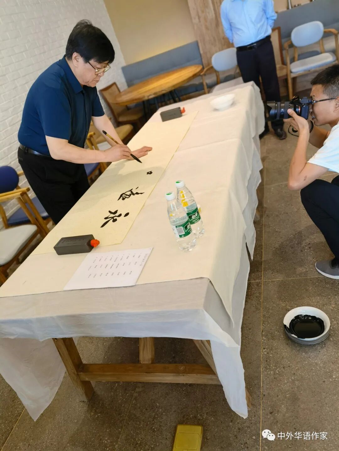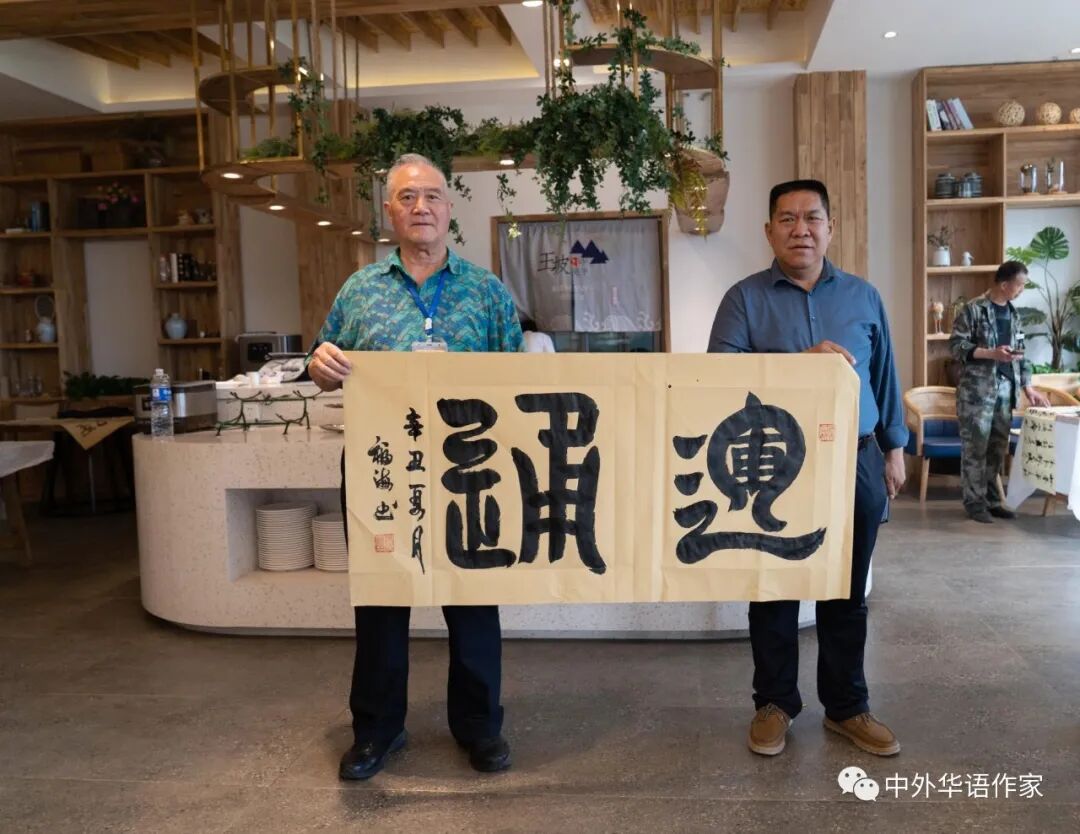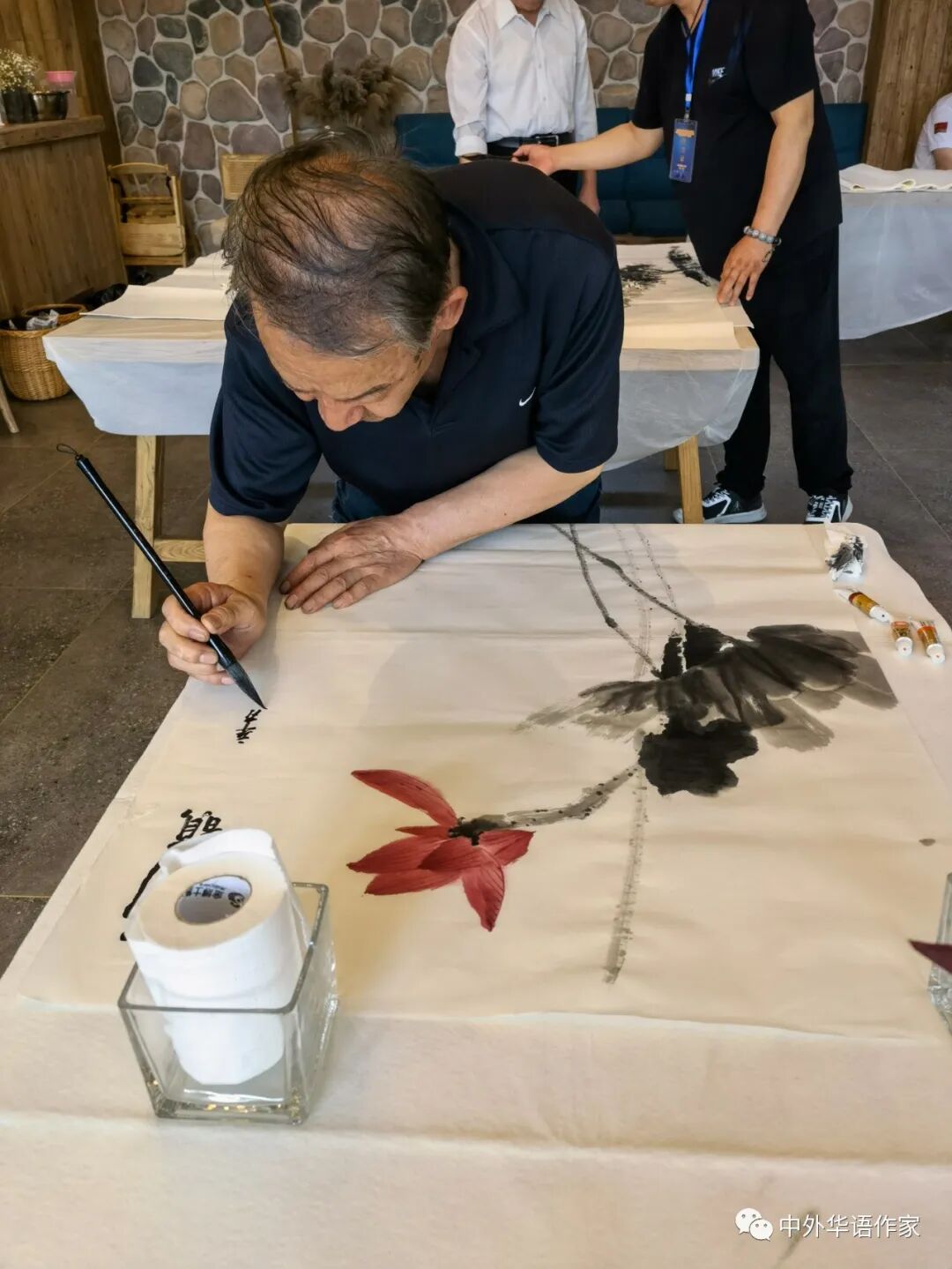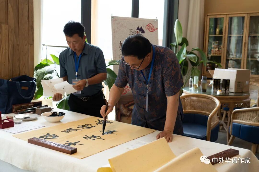 在京娘湖地博园假日酒店前合影留念后,集体参观游览了风景秀丽京娘湖景区。游览京娘湖景区后,在王坡民宿现场创作,共同挥毫泼墨,以笔代言,以纸为媒,把美好的祝福,描绘成精彩的画卷。一幅幅作品苍劲有力、秀丽清雅、字字书写豪情,笔笔传颂真意。书画家现场创作的多幅书法、国画作品,全部赠给京娘湖景区,装裱留存。