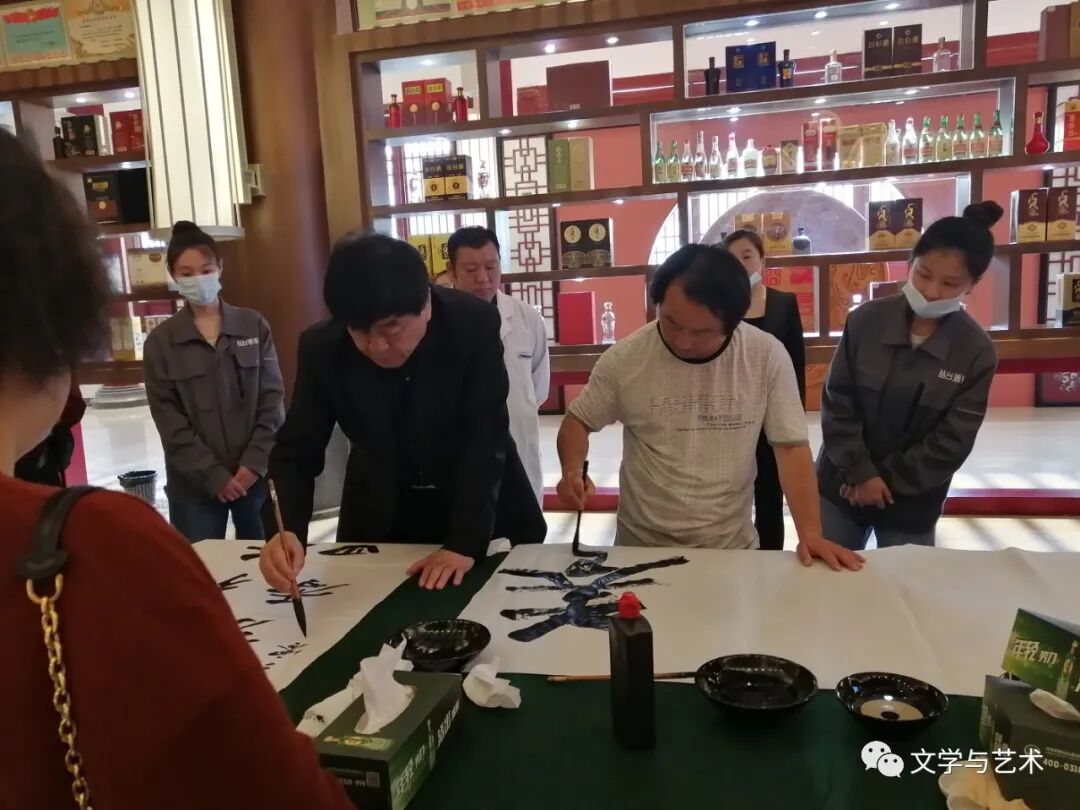 百余名文学艺术家先后参观游览了丛台酒业的博物馆、酒窖,并在窖藏封坛酒上签名留念。来自全国各地的书画大家还挥毫泼墨,现场创作书画作品一百多幅,使参加丛台酒业采风行的嘉宾、代表品尝了一场书画艺术的视觉盛宴!