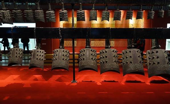 嵌错赏功宴乐壶,青铜编钟鄂出土。