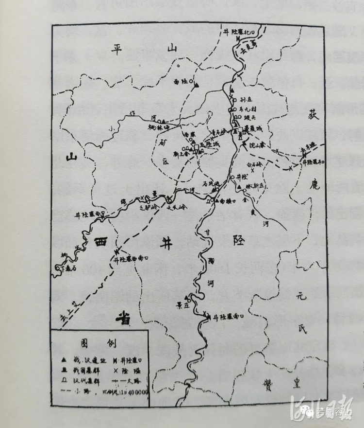 历史上关于“井陉口”的最早记载就是《史记》。《史记·淮阴侯列传》记载:“信与张耳以兵数万,欲东下井陉击赵。赵王、成安君陈馀闻汉且袭之也,聚兵井陉口,号称二十万。”接下来发生的故事,就是历史上有名的战役“背水之战”。