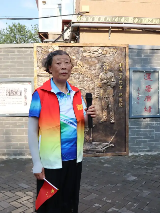 火炬手吕广扩,在曲水亭街北口辛公馆旧址,讲述辛锐为革命事业壮烈献身的事迹。