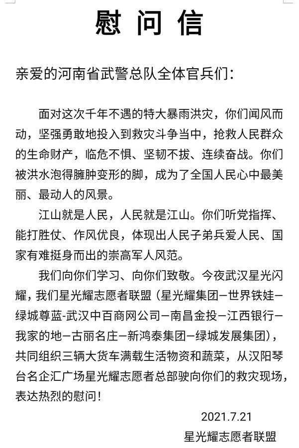 附星光耀志愿者联盟慰问信全文如下: