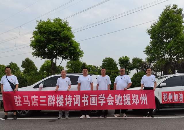 作为驻马店三醉楼诗词书画学会会长的张宝先生,与全国人民一样,在时刻关注灾情的发展的同时,于22日自费购置了价值3000余元的火腿肠、面包、充电宝等灾区人民急需的物资,并电话邀约了5位三醉楼的会员,于23日清晨驾驶两辆汽车驰援郑州。