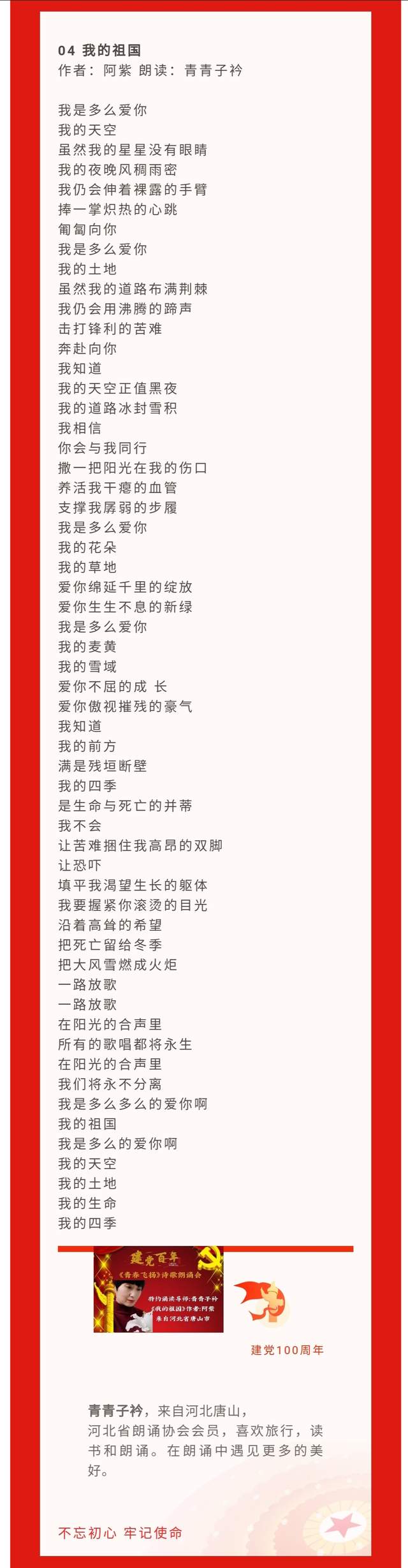 4.《我的祖国》作者:阿紫 朗诵:青青子衿——来自河北省唐山市