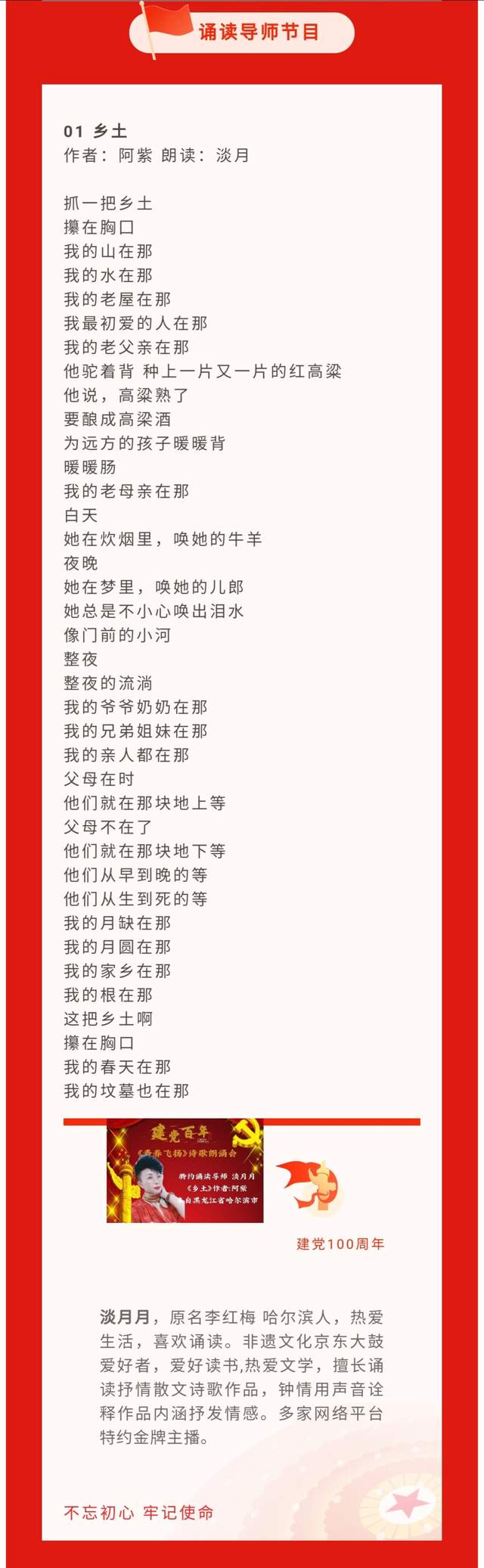 1.《乡土》作者:阿紫 朗诵:淡月 ——来自黑龙江省哈尔滨市