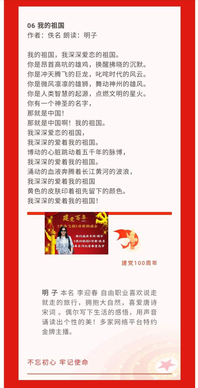6.《我的祖国》作者:佚名 朗诵:明子——来自河北省秦皇岛市