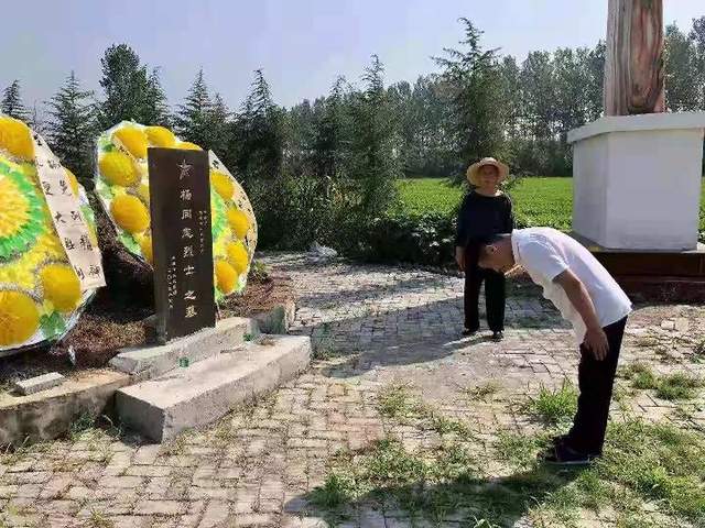 板店乡“泥土香”群众文化艺术馆馆长李新国路刚好路过此地,见到了这一幕。 “我是一名退役军人,家住驻马店市区。早些时候在媒体上看到过这位无名烈士的事迹,心里非常感动,想着他一个人长眠在这里挺孤单的,总想找个时间过来陪陪他。今天是‘八一’建军节,我就专程从驻马店赶来,陪他过个节,让他不再觉得孤单。”与李新国谈起此行的缘由,陌生人动情地说,“以后每年‘八一’我都会过来和他一起过节日。”“你为烈士洒两瓶水有什么寓意吗?”李新国问。“没有烈士们的流血牺牲,就没有我们今天的幸福生活,吃水不忘挖井人,我要让烈士也品尝一下甘甜的泉水。”陌生人说。“我看花圈挽联上敬挽人为一名退役军人,为什么不直接写上你的姓名?”李新国问。“个人的姓名无足轻重,只要人们知道有一名退役军人曾经来过就行了。”陌生人说,“你是当地人,还是给我详细讲讲无名烈士的事迹吧。”“我第一次系上红领巾就是在无名烈士墓前,烈士的英勇事迹我永远铭记在心。”李新国说。据李新国介绍,无名烈士的故事发生在1949年春夏之交的一天上午,当时小周庄一带的群众正在田间劳作,突然有一架飞机出现在上空,在小周庄附近低空盘旋,并向田间劳作的群众扫射、投弹。就在这千钧一发的危急时刻,只见一名年轻的解放军战士骑着一匹白马疾驰而来,当他发现险情后挺身而出,纵马奔驰在广袤的田野上,吸引敌机注意并与其周旋,舍身掩护人民群众。敌机疯狂地向其扫射,最后群众脱险了,而这位解放军战士却不幸牺牲了。敌机飞走后,当地群众怀着崇敬的心情将其隆重安葬。解放后经过当地革命干部多方打听,只得知这位英勇献身的解放军战士姓杨,名字无人知晓。为使红色基因得以传承,近年来板店乡先后投入近三十万元在烈士墓旁修建了无名烈士纪念广场,对烈士墓进行了整理、修缮,在烈士墓旁竖起了花岗岩纪念碑,硬化了墓地周边的路面,修通了通往墓地的道路,沿路及墓地周边栽植了松柏,以示烈士精神万古长青,无名英雄永垂不朽。目前无名烈士墓已成为板店乡红色革命教育基地,每逢重大节日,当地干部、群众、学校师生都会自发来到烈士墓前敬献花圈、花篮,举行祭拜仪式(张红卫 朱晓吾)