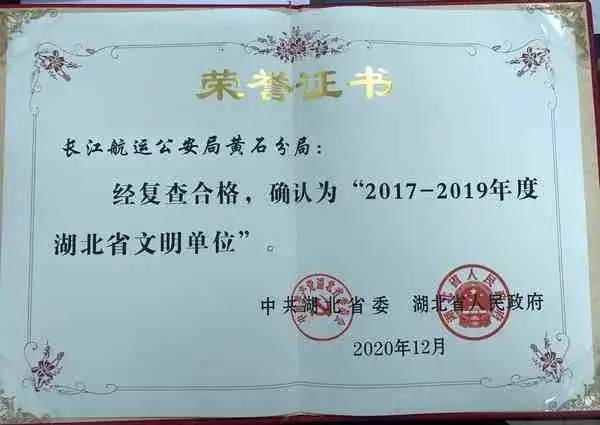 近日,黄石市下发《市委办公室 市政府办公室关于2020年度全市平安建设(综治工作)考核结果的通报》,长江航运公安局黄石分局荣获2020年度平安建设(综治工作)优胜单位。
