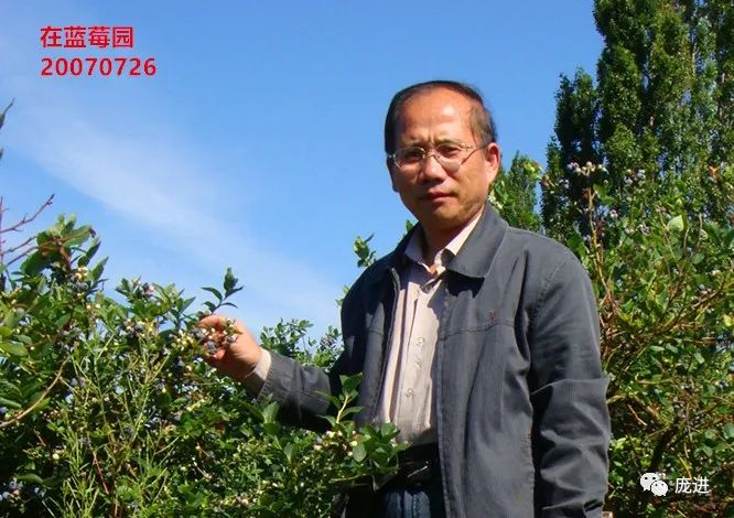 因为以体验为旨,就不着急,也不必完全按小刘示范的那样采,怎么顺手怎么采就是了。开始还凉爽,随着太阳的升高,有了热烘烘的感觉,于是脱了外衣,放在蓝莓丛上,顺便取出相机,拍了几张照片。接着又采了一阵。中午12点正,小刘在场部二楼晾台上喊“休息喽——用餐喽——”,于是大家停下手来,从林行中钻出,到场部处用餐。
