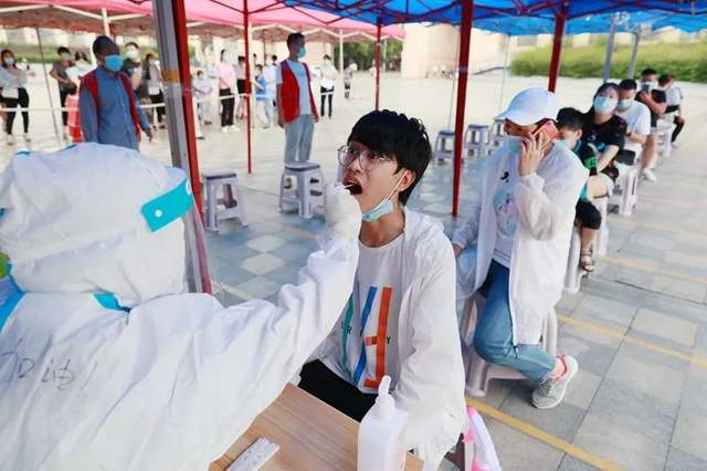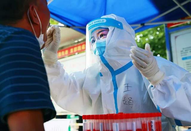 刘兴微、解静、路如磊、门玉芳……8月以来,为了抗击疫情,他们的很多时刻值得我们铭记。后背上不断凝集的汗珠缓缓向下滑落,每个队员的衣服都被汗水浸透;身披战甲半夜出征,奔赴核酸检测一线;上门为行动不便的老人提供核酸检测服务,话语耐心安抚,手中举动轻柔;脸上的勒痕展现在他们的笑脸之上;泡皱的双手依旧挥动在高高飘扬的党旗之下,这都是他们最美的勋章。