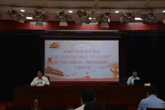自全市深化市校合作、共建“12大基地”工作推进会召开以来,运城经济技术开发区认真贯彻会议精神,立足实际精准施策、靶向发力,以更加开放的思路和更加务实的举措积极推进技能服务人才培养基地建设。8月18日,运城经济技术开发区举办全区党员干部素质能力提升“学习大讲堂”暨“学好金融知识,用好经济思维”专题培训,邀请运城学院经济管理系刘勃教师以《金融知识之政府基金概述》为题作专题辅导。开发区班子成员及各单位副部长以上党员干部现场聆听,1000余名党员干部通过网络直播同步学习。运城经济技术开发区管委会副主任王刚主持会议并讲话。