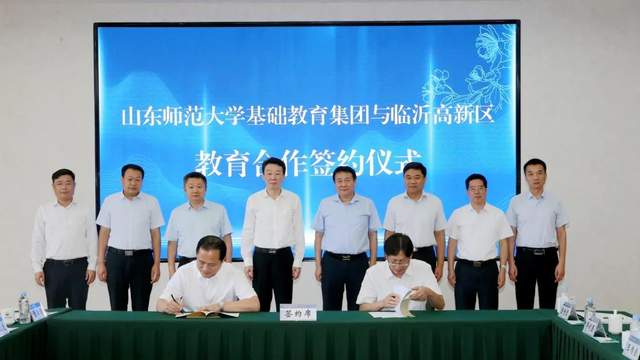 山东师大基础教育集团常务副理事长、总经理苗禾鸣,临沂市高新区党工委书记、管委会主任徐仲圣,代表双方签订了《全面教育合作框架协议》。