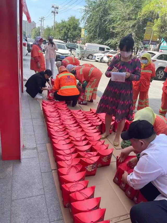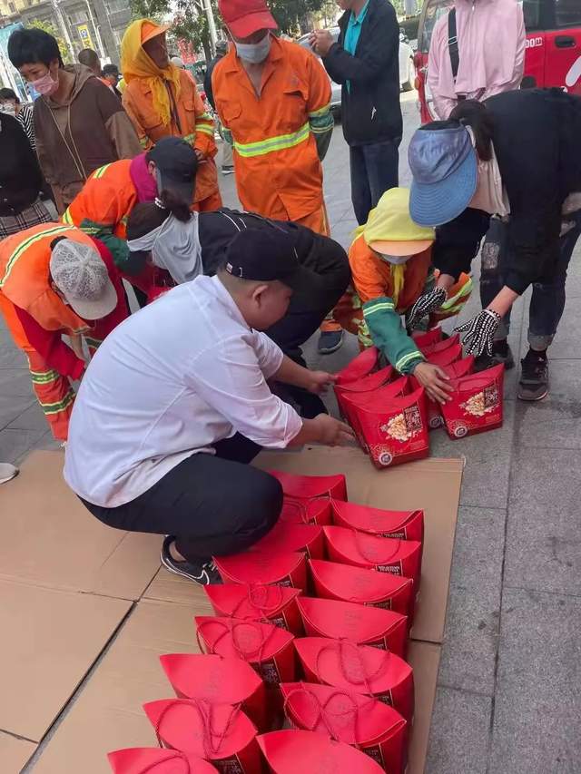 9月18日,在中秋、国庆双节即将来临之际,民进盖州市基层委员会、盖州市凯润食品联合开展“情暖中秋,心系环卫”关爱环卫工人爱心活动,为盖州市510名环卫工人每人送上一份中秋月饼,总价值16800元,感谢他们一直以来的辛勤付出。