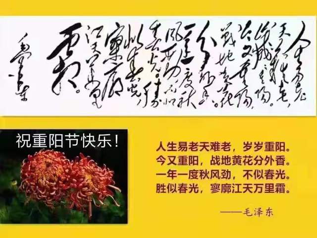 圖5 毛澤東手書詩詞, 今又重陽, 祝大家重陽節登高望遠, 由素心提供