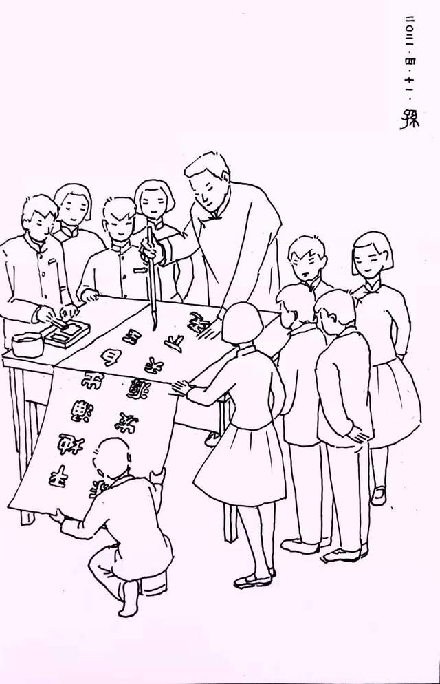 圖1, 老爺爺教孩子們寫毛筆字, 插圖蓮君