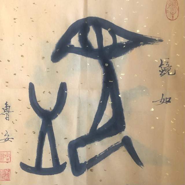 圖4 古文鑑,字 過去沒有鏡子, 古人用水作為鏡子, 表示人在盛有水的器皿上方審視自己, 作者魯安書寫