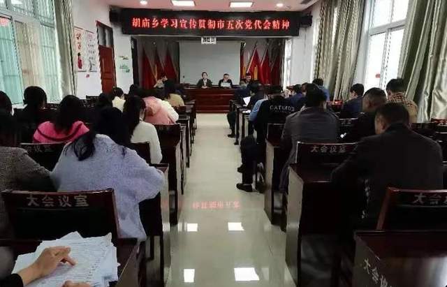 10月15日上午,驿城区胡庙乡组织机关全体人员集中学习宣传贯彻市五次党代会精神,党委书记赵敏主持会议,安排部署贯彻落实工作。