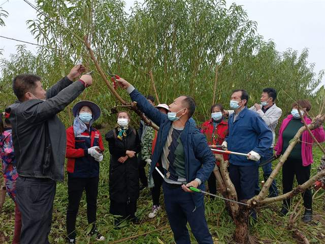 上午,鄂州市鄂城区生态农业协会技工培训开课,8名学员参加整枝技艺,桃树种植管理由李月梅、金清林、梅水定、柯忠平、万胜利、施建宏、方国荣、熊新中、吴武风、杨旭、刘回桂亲自指导与交流。