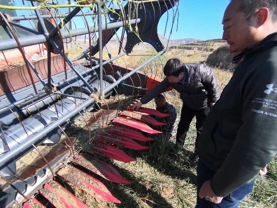 专家组积极参与抢收工作,积极协助荞农对陷坑机械进行救援