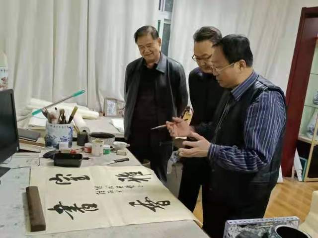 笔者深以为然,便电话继雨兄,却不想以认真和勤奋蜚声书画圈儿的继雨兄,早已展纸研墨做好了准备……恰在此时,由兄弟四人组群的“鹰燕同发”微信圈里,发来了清发兄的一个邀请:“继雨老弟,下午想到齐鲁油画院练练笔,并请教一些书写中的困惑,晚上请三兄弟吃‘立冬’火锅,可否?!”