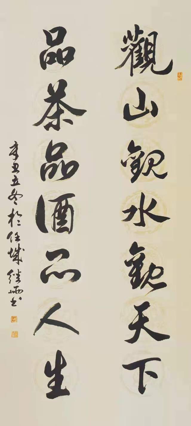 不可不论者,乃是继雨兄上午清心苦耕的一幅对联:观山观水观天下,品茶品酒品人生。