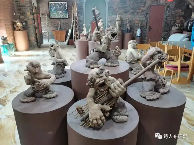 注1:济南汉方艺术馆位于济南市南部山区管委会仲宫街道办事处上海街。汉方先生是济南市的拔尖人才及高技能专业人才,其陶艺作品成为济南市最具本土特色的艺术品,被很多爱好者所收藏。2009年,汉方的雕塑《有朋自远方来》被国际奥组委永久收藏,该作品放大后安置于山东大厦,成为山东大厦的迎宾雕塑。2010年汉方创作的群组雕塑《老济南印象》被天下第一泉风景区收藏,成为国内外游客了解济南、解读济南文化的立体画卷。汉方陶艺粗犷,像是中国画中的大写意,率性而为。但在“写意”的表象下,更有巧妙之处,人物神态细腻入微,陶艺釉色古朴考究,体现出汉方先生善于捕捉生活细节的匠心。本文作者布建忠(小布丁)经过实地观摩,颇有感悟。谨以此文敬献给汉方先生。