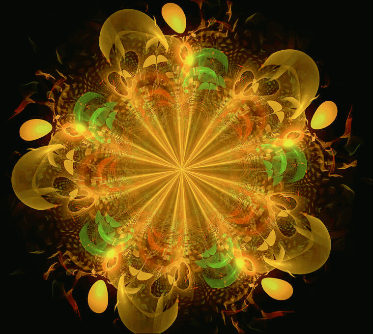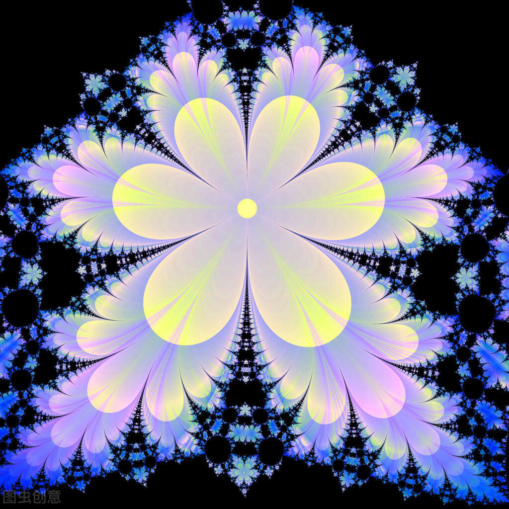 在黑色背景上装饰分形抽象黄色花