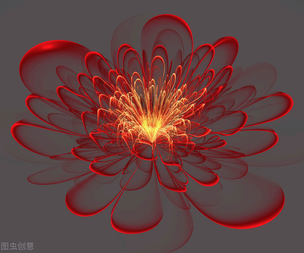 美丽的红色花,在灰色的背景上。计算机生成虎视眈眈