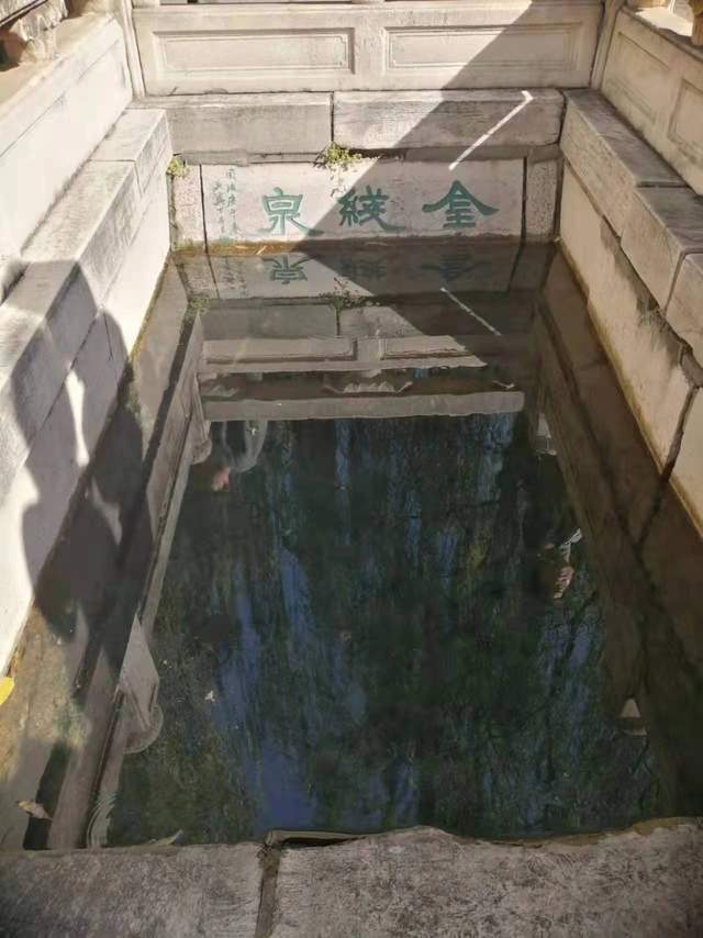 趵突泉公园中的金线泉,太阳斜照在泉池中,围栏遮挡了光线,祈待太阳正照在水线上,再现“神彩熠熠”的奇景妙线。