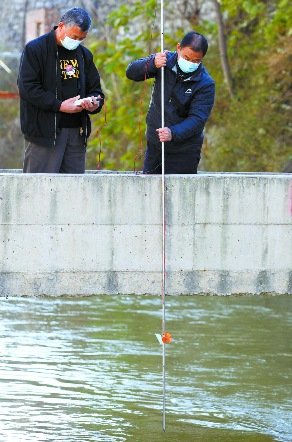 绵右灌区管理处工作人员正在测量绵右渠源头流量。张海强 摄