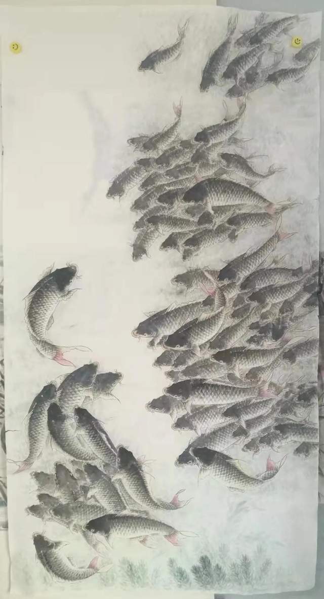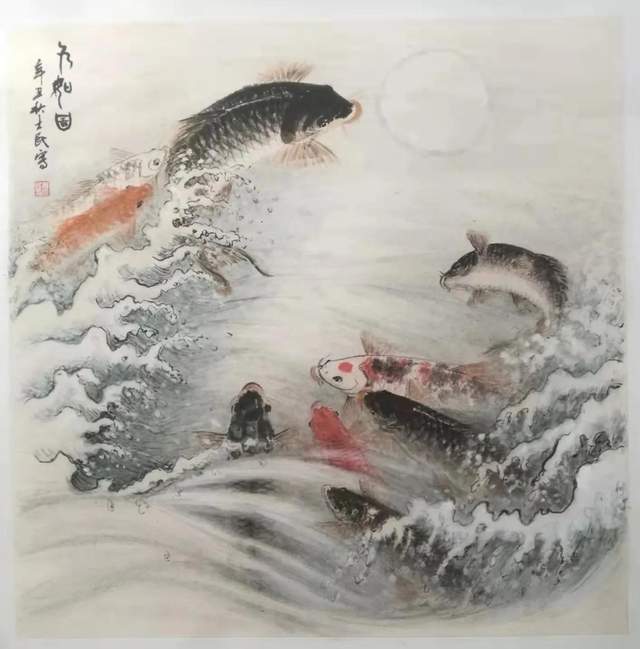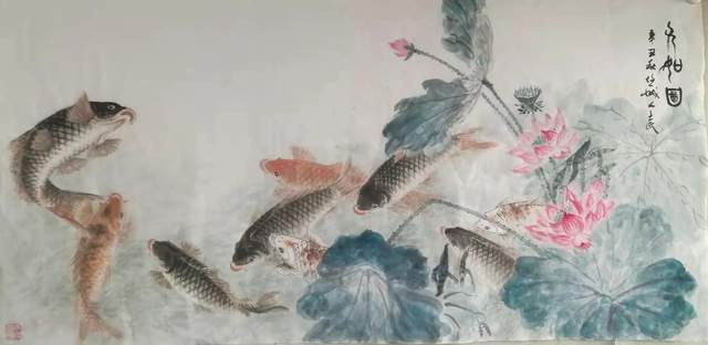 等儿子再次赶回家中时,老秀才已经奄奄一息了。儿子把画轴挂在墙上,老秀才看呀,看呀,忽然坐起来指着画大声说:“鱼到水中了!鱼到水中了!你看游得多欢呀!”没过多久,老秀才的病居然好了。